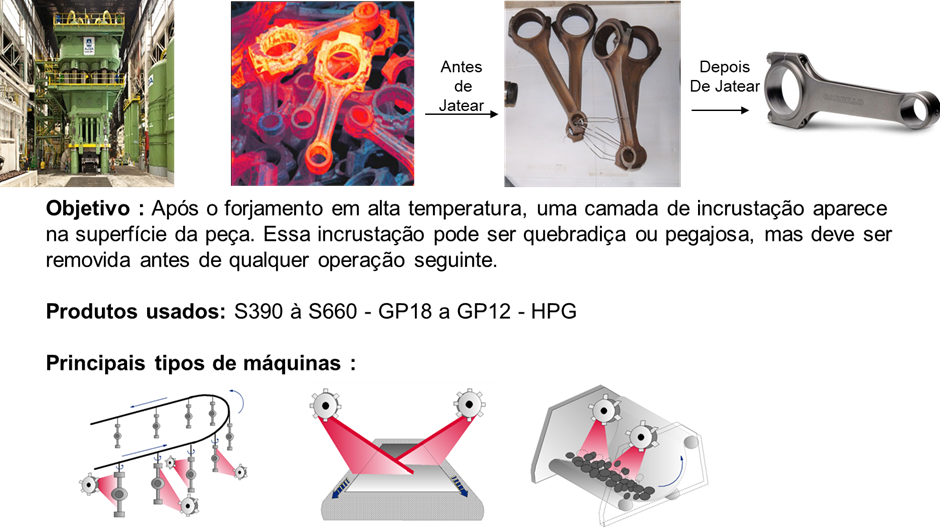 Remover a carepa não é apenas uma questão estética; é crucial para garantir a funcionalidade e durabilidade da peça forjada. Aqui, produtos como S390 a S660, GP18 a GP12 e HPG entram em jogo. Esses materiais abrasivos são usados em processos de jateamento, removendo efetivamente a carepa sem danificar o metal subjacente.